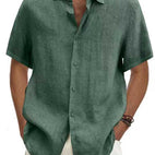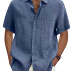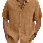 ZIMOWA WYPRZEDAŻOberon - Męska Koszula Lniana z Krótkim Rękawem