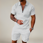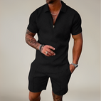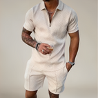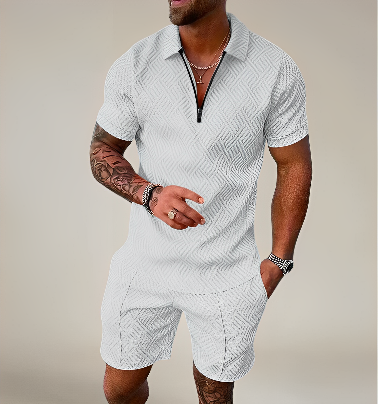 Zaprojektowany dla tych, którzy cenią czyste linie, nowoczesne kroje, i bezproblemowe stylizacje, ten męski zestaw polo z zamkiem i szortami to Twój nowy ulubieniec na codzienny letni wygląd. Niezależnie od tego, czy idziesz na grilla, spacerujesz po mieście, czy relaksujesz się w stylu, ten zestaw oferuje komfort i chłód w równym stopniu.